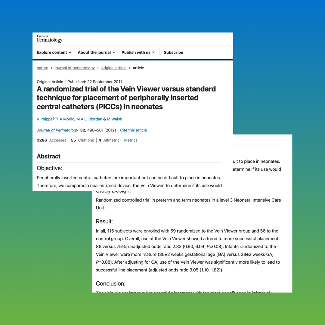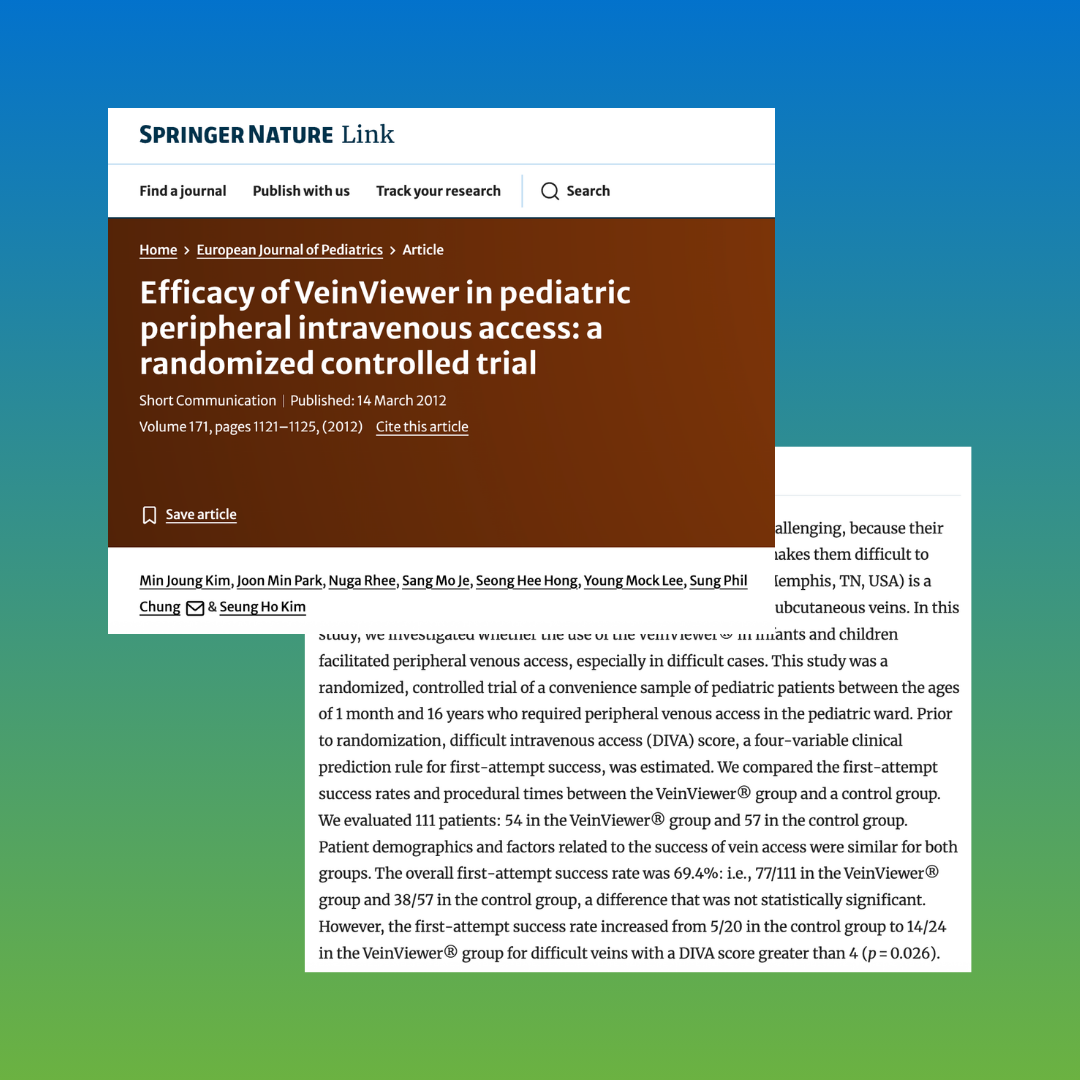 VeinViewer® is supported by peer-reviewed research and clinical experience in pediatric vascular access, including studies focused on difficult IV access and improved identification of access targets.